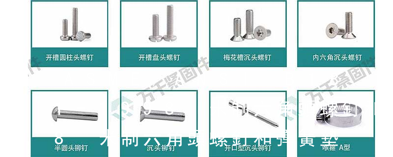 11. 組合件和連接副:組合件是指組合供應的一類緊固件,如將某種機器螺釘(或螺栓、自供螺釘)與平墊圈(或彈簧墊圈、鎖緊墊圈)組合供應;連接副指將某種專用螺栓、螺母和墊圈組合供應的一類緊固件,如鋼結構用高強度大六角頭螺栓連接副。