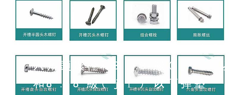 1.螺栓:由頭部和螺桿(帶有外螺紋的圓柱體)兩部分組成的一類緊固件,需與螺母配合,用于緊固連接兩個(gè)帶有通孔的零件。這種連接形式稱螺栓連接。如把螺母從螺栓上旋下,又可以使這兩個(gè)零件分開,故螺栓連接是屬于可拆卸連接。 1.機(jī)螺釘 2.自攻螺釘 3.鉆尾螺釘 4.墻板釘 5.纖維板釘 6.木螺釘7.六角木螺釘 8.不脫出螺釘 9.組合螺釘 10.微型螺釘 11.家具螺釘 12.電子螺釘頭型:1.六角頭(hexagon head) 2.六角頭法蘭面(hexagon head with flange) 3.